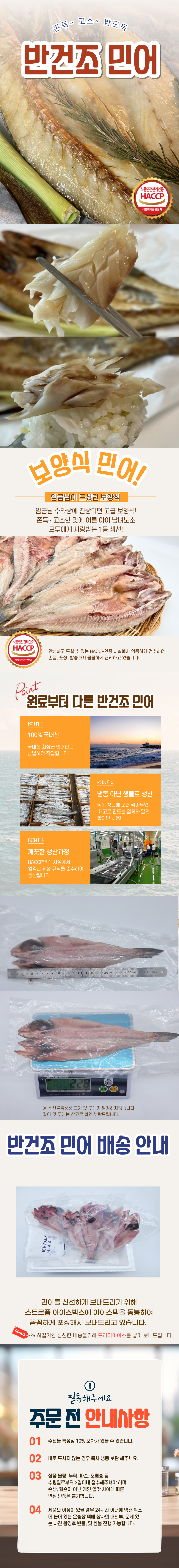 국내산 반건조 민어 1미 포장 - 220g내외 민어97%, 정제소금3%