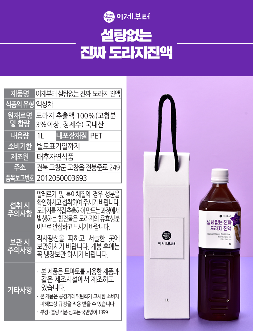이제부터 설탕없는 진짜 도라지 진액 [1L]