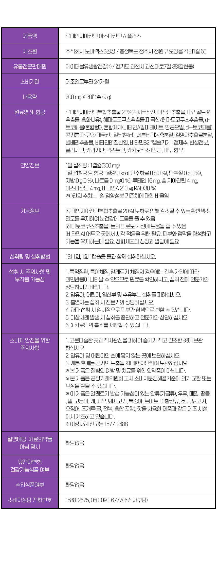[JW중외제약] 루테인지아잔틴 아스타잔틴 A 플러스 (300mg x 30캡슐)
