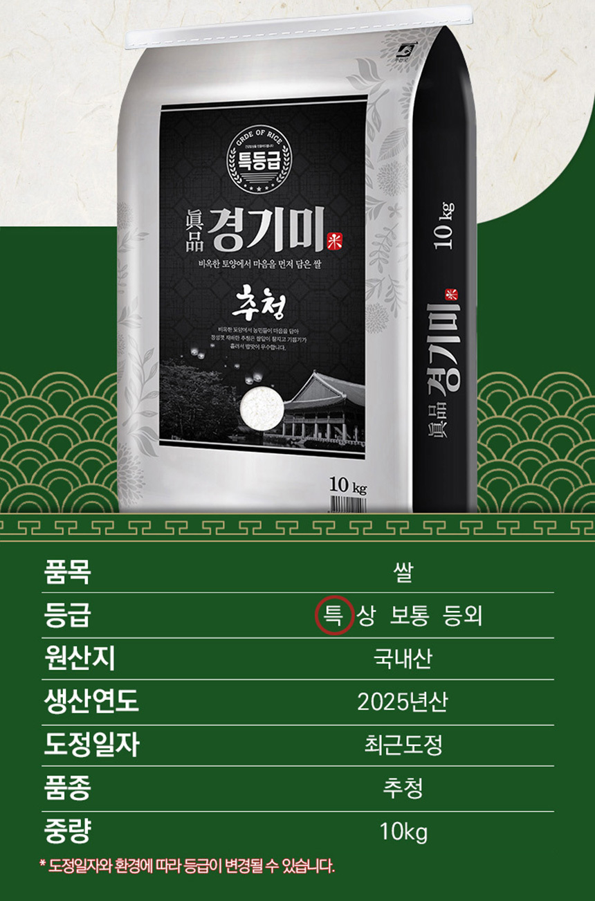 2025년 진품경기미추청 10kg 특등급 쌀
