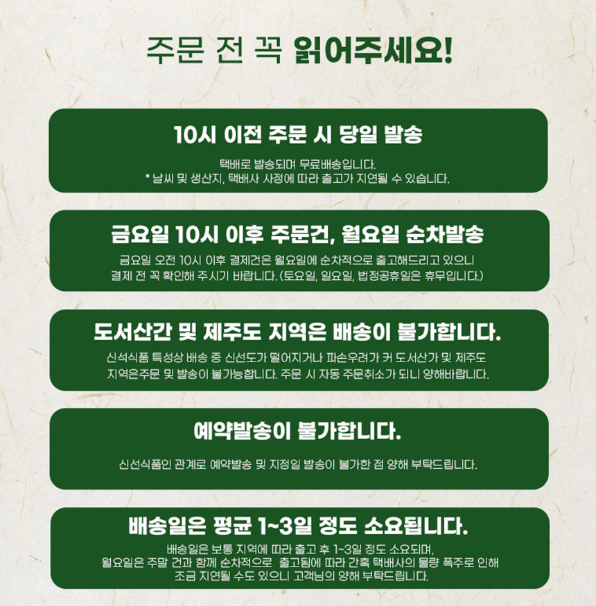 구매/배송 ※ 상품정보에 별도 기재된 경우, 아래의 내용보다 우선하여 적용됩니다.