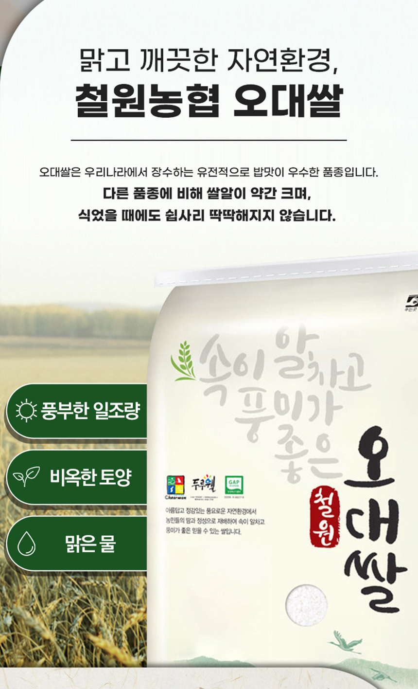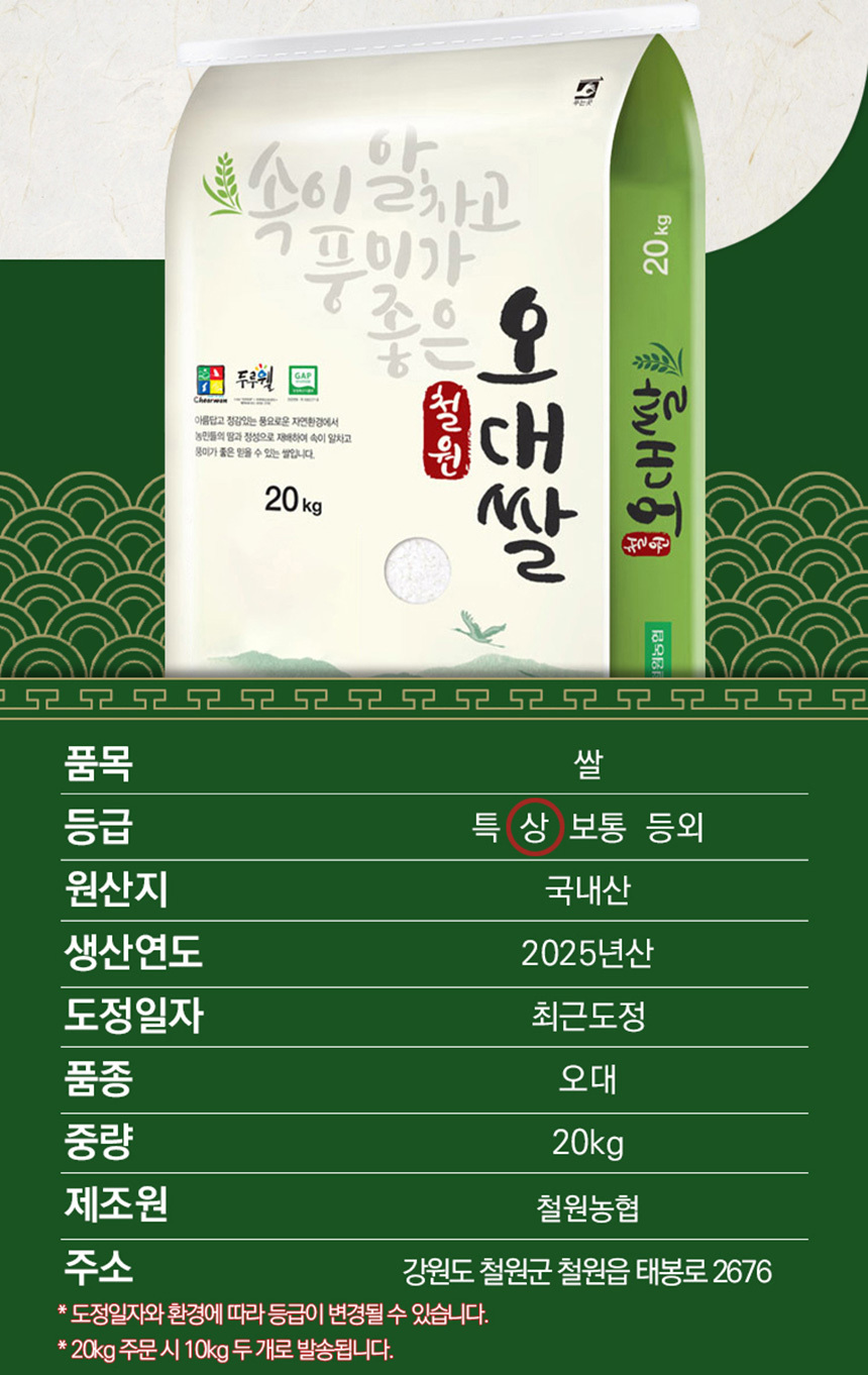 2025년 철원농협철원오대쌀 20kg 상등급 쌀