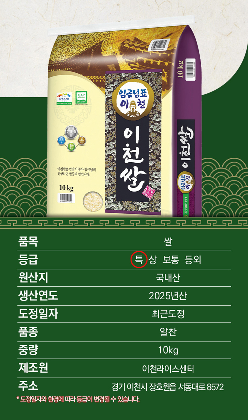 2025년 임금님표이천쌀 10kg 상등급 쌀