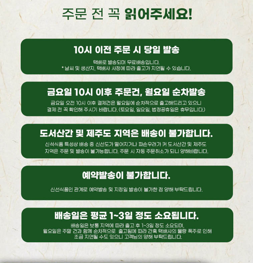 구매/배송 ※ 상품정보에 별도 기재된 경우, 아래의 내용보다 우선하여 적용됩니다.