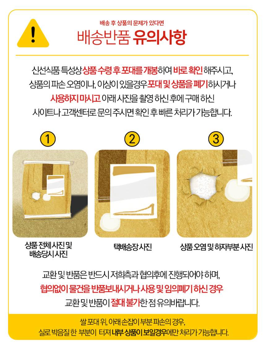 - 상품 수령 후 7일 이내에 신청하실 수 있습니다. 단, 제품이 표시·광고 내용과 다르거나, 계약과 다르게 이행된 경우는 제품 수령일부터 3개월 이내, 그 사실을 안 날 또는 알 수 있었던 날부터 30일 이내에 교환/반품이 가능합니다.