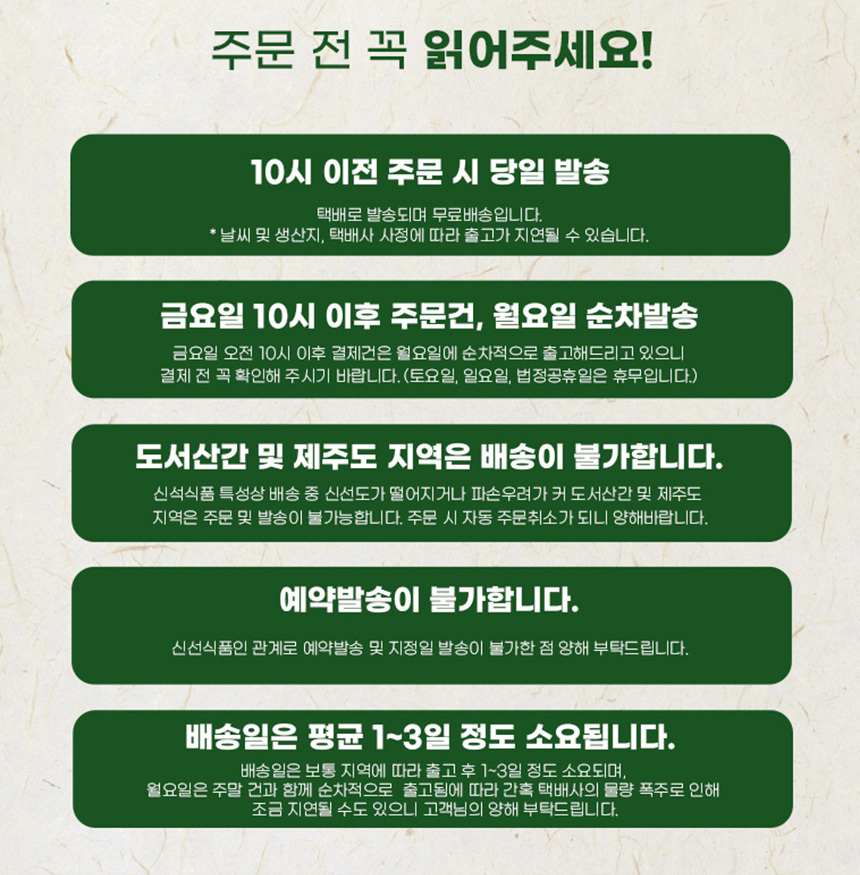 구매/배송 ※ 상품정보에 별도 기재된 경우, 아래의 내용보다 우선하여 적용됩니다.