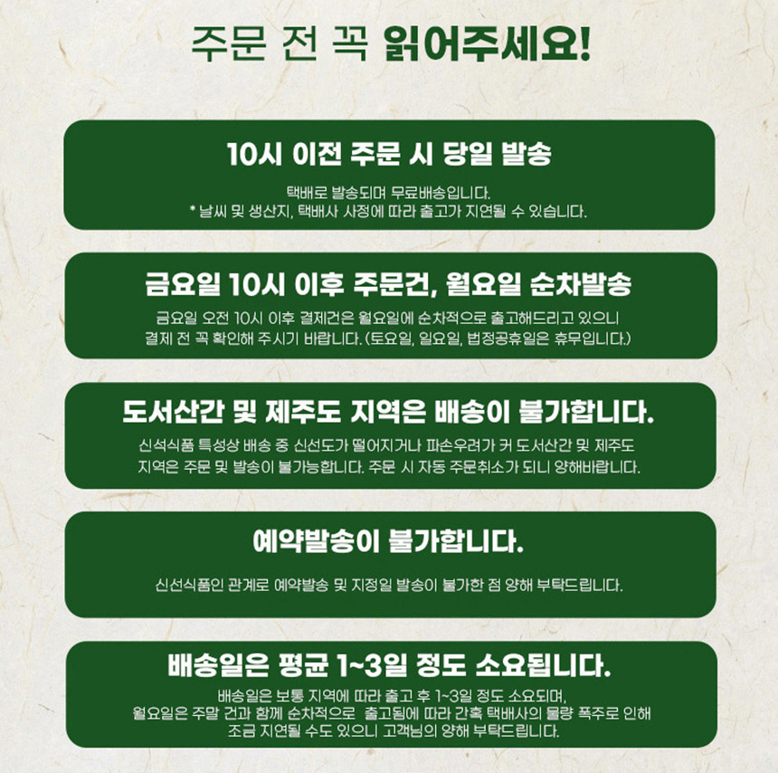 구매/배송 ※ 상품정보에 별도 기재된 경우, 아래의 내용보다 우선하여 적용됩니다.