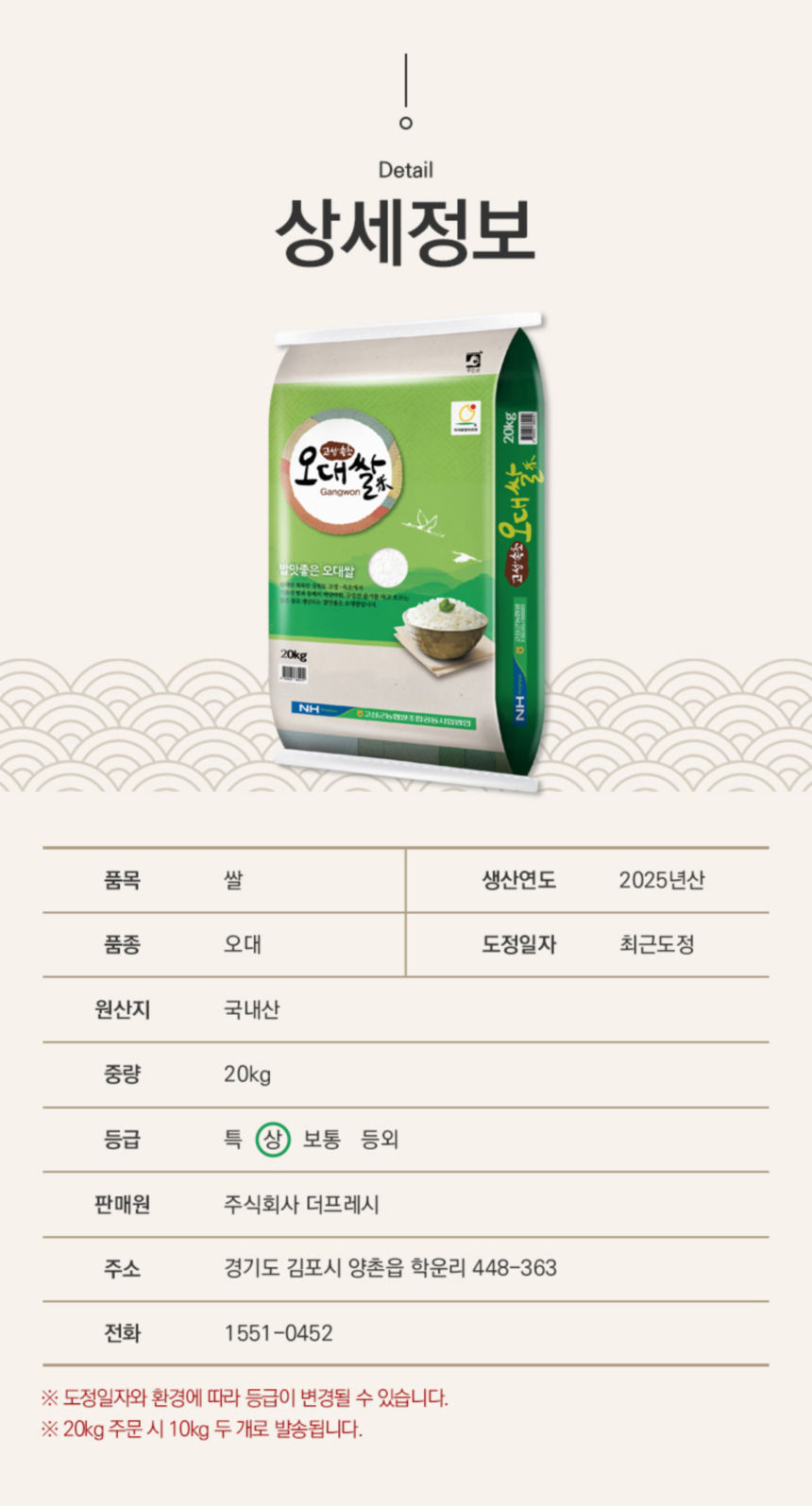 2025년 고성농협오대쌀 20kg 상등급 쌀