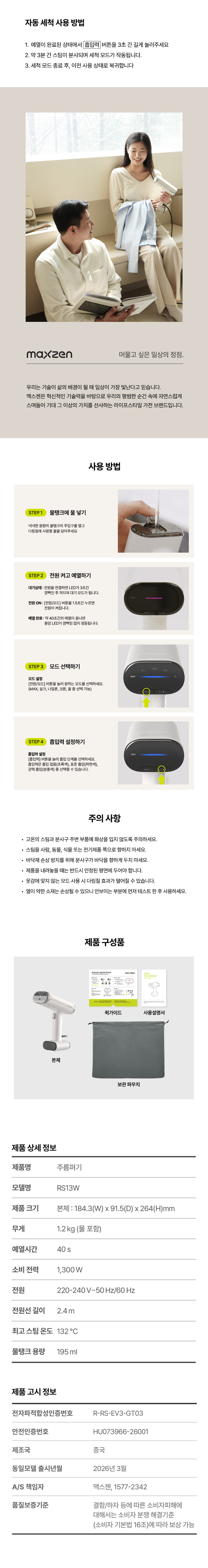 [맥스젠] 핸디형 진공스팀다리미 SR13W