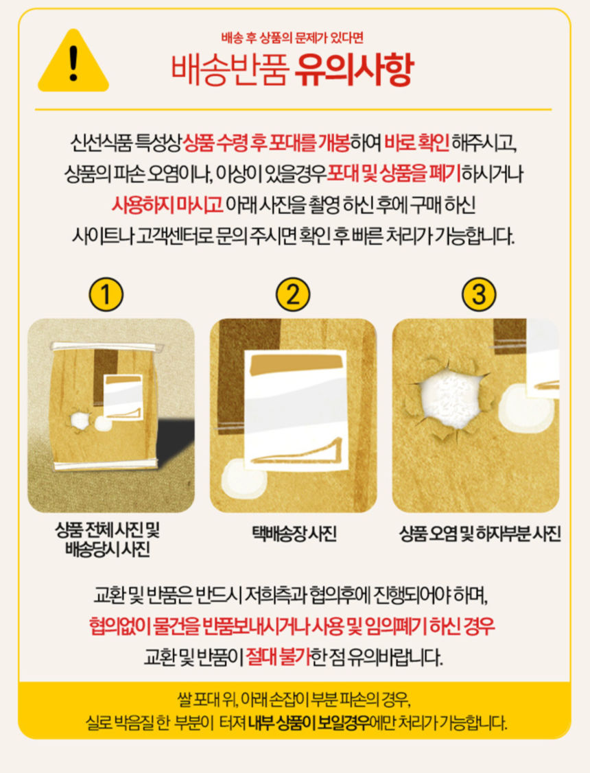 - 상품 수령 후 7일 이내에 신청하실 수 있습니다. 단, 제품이 표시·광고 내용과 다르거나, 계약과 다르게 이행된 경우는 제품 수령일부터 3개월 이내, 그 사실을 안 날 또는 알 수 있었던 날부터 30일 이내에 교환/반품이 가능합니다.