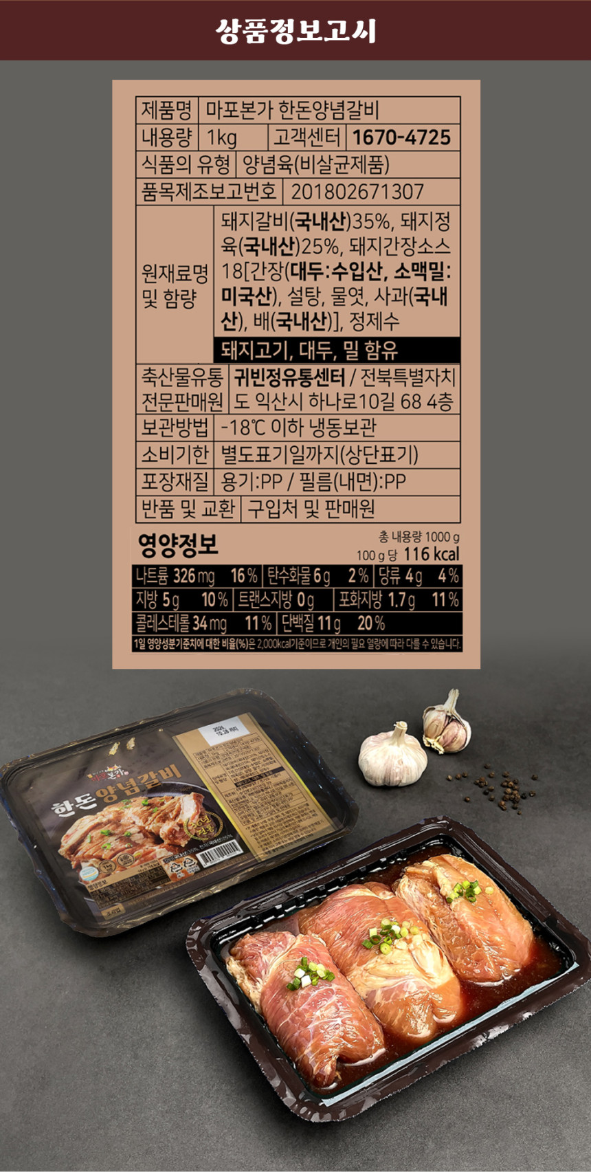 [귀빈정] 마포본가 명작 양념갈비1kg(3-4대)