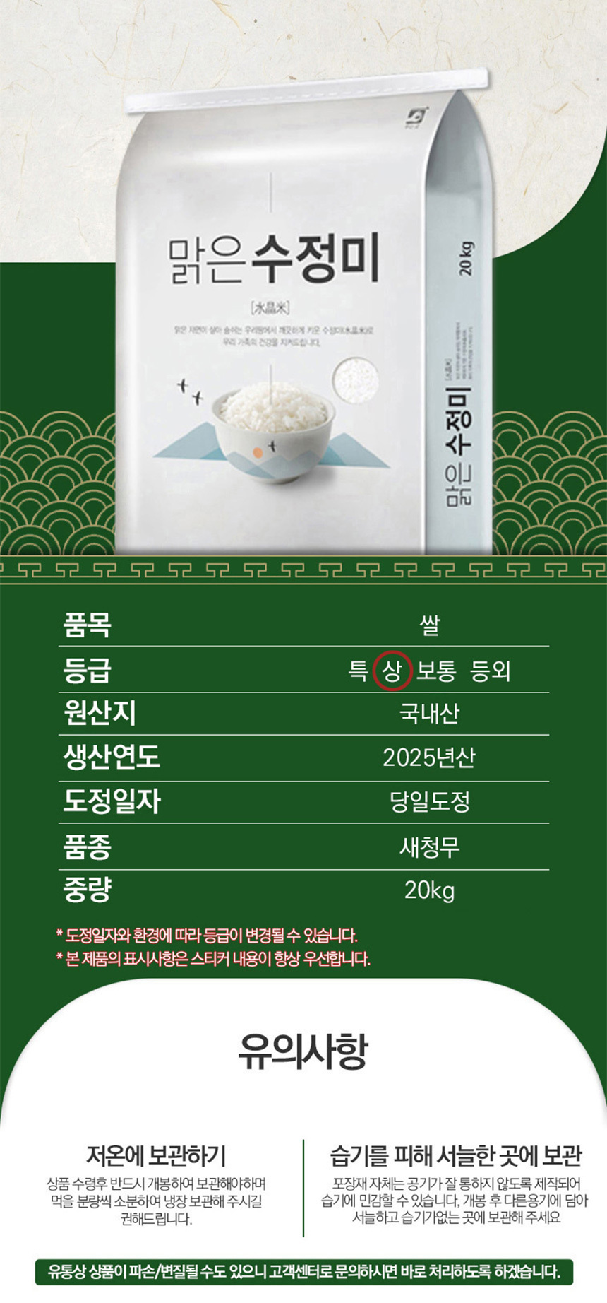2025년 맑은수정미 20kg [당일도정] 쌀