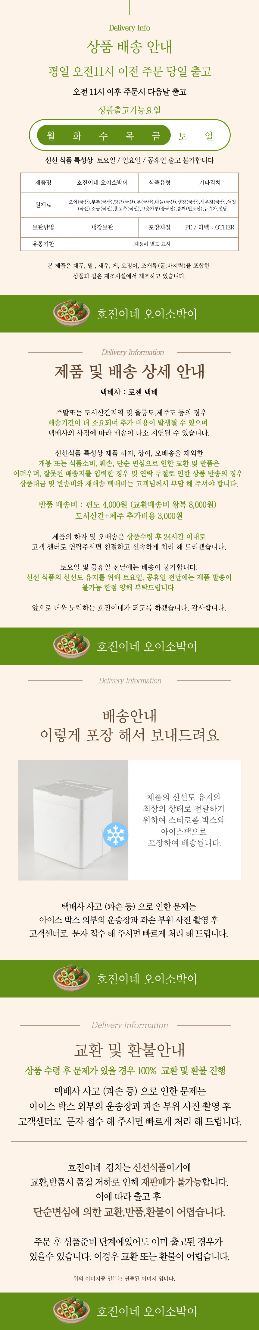[호진이네] 국산 오이소박이 수제 오이김치 시원한 김치 1kg~5kg