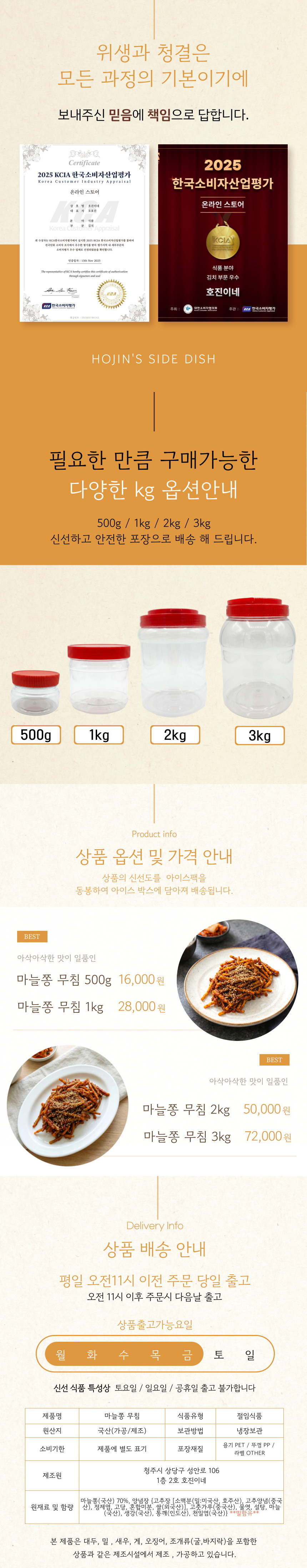 [호진이네] 수제반찬 국산 마늘쫑장아찌무침 마늘쫑무침 500g~3kg