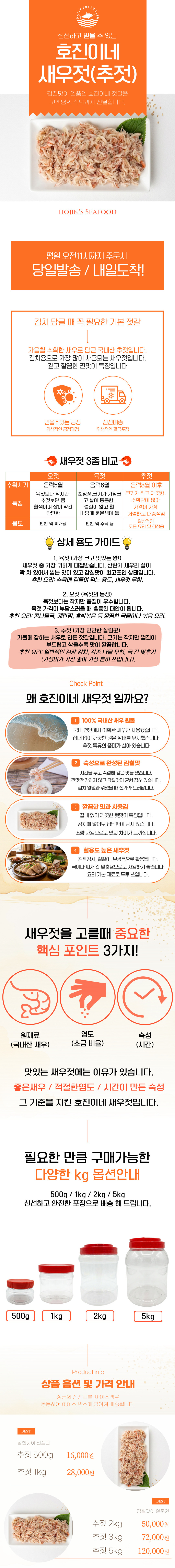 [호진이네] 국내산 새우젓 물 1방울 들어가지 않은 새우젓 오젓 500g~5kg