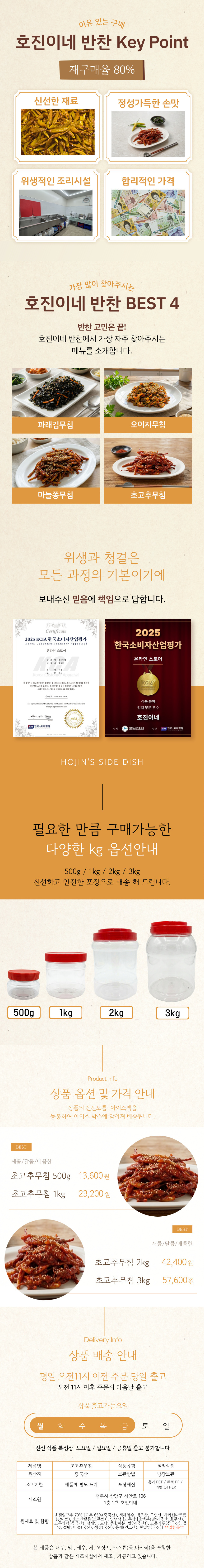 [호진이네] 수제반찬 초고추무침 초고추지무침 양념고추무침 500g~3kg