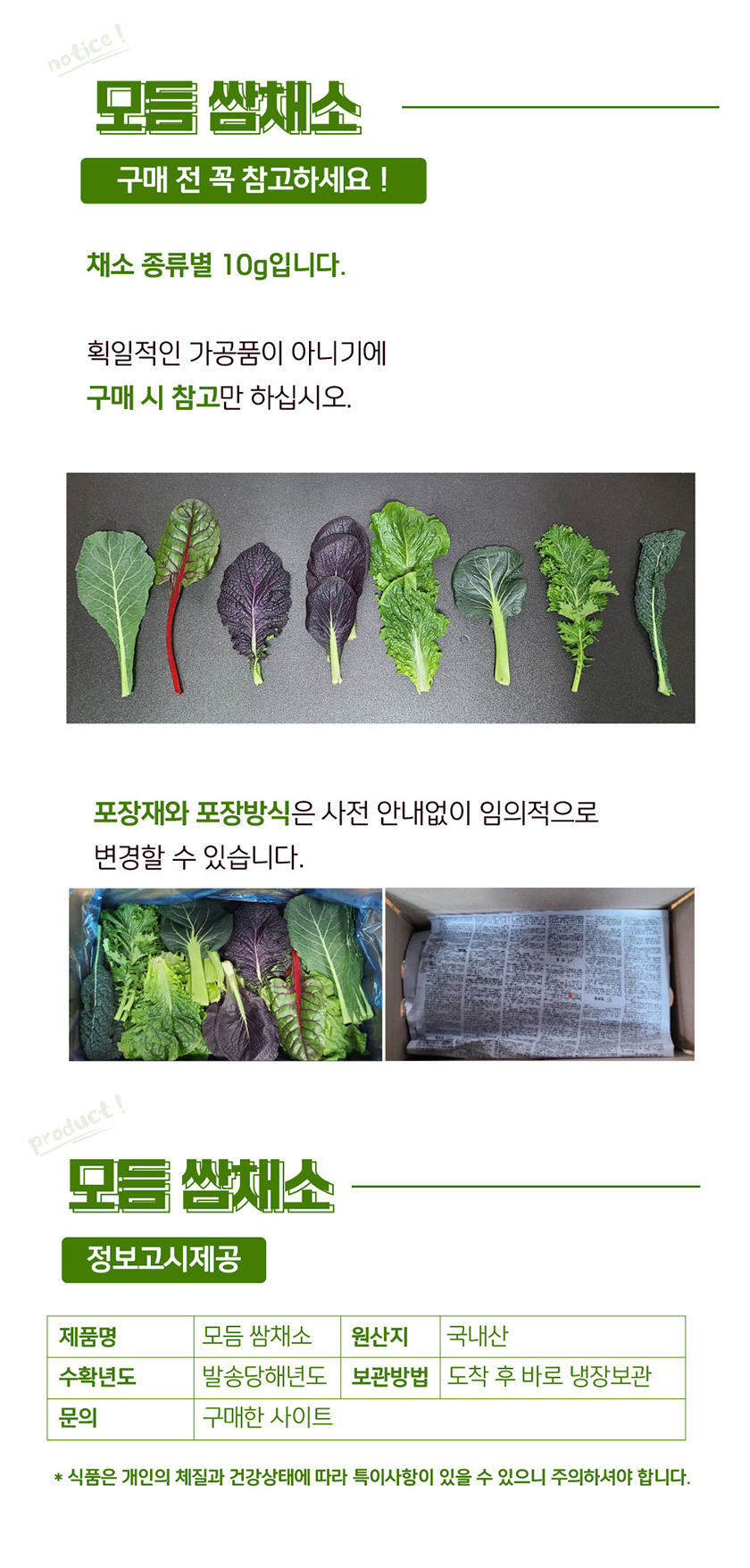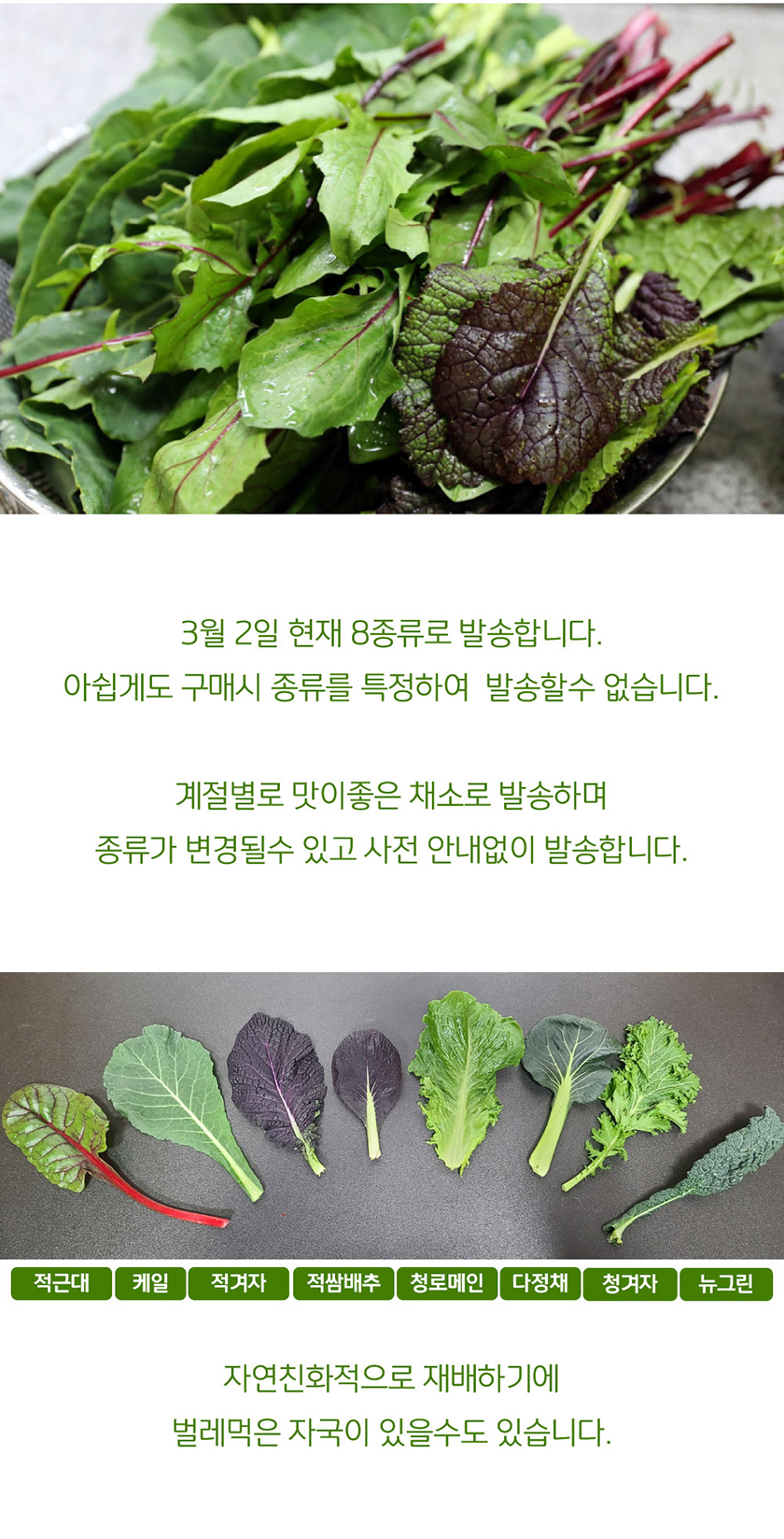 [하늘농장] 국내산 모듬 쌈채소 1kg/2kg (8종류내외)