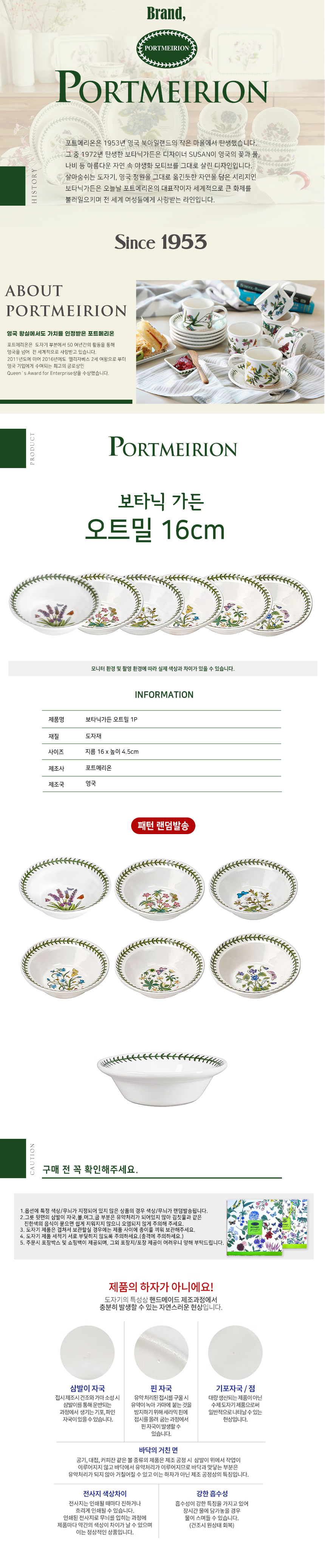 [포트메리온] 보타닉가든 오트밀 16cm 1개 (디자인 랜덤, 포트메리온 케이스, 쇼핑백포함)