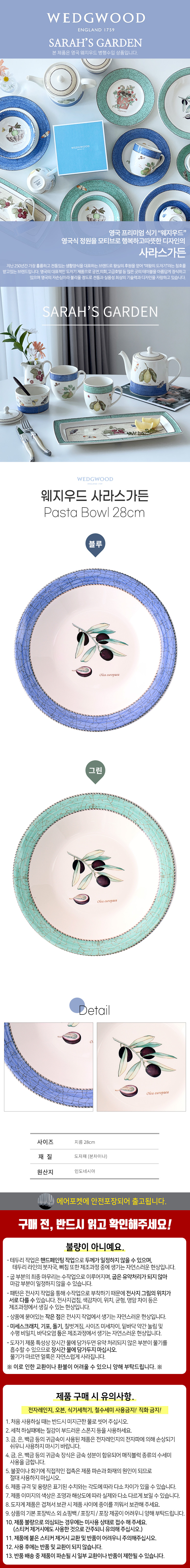 [웨지우드] 사라스가든 28cm 파스타볼 1p (블루,그린 택1) (패키지, 쇼핑백)