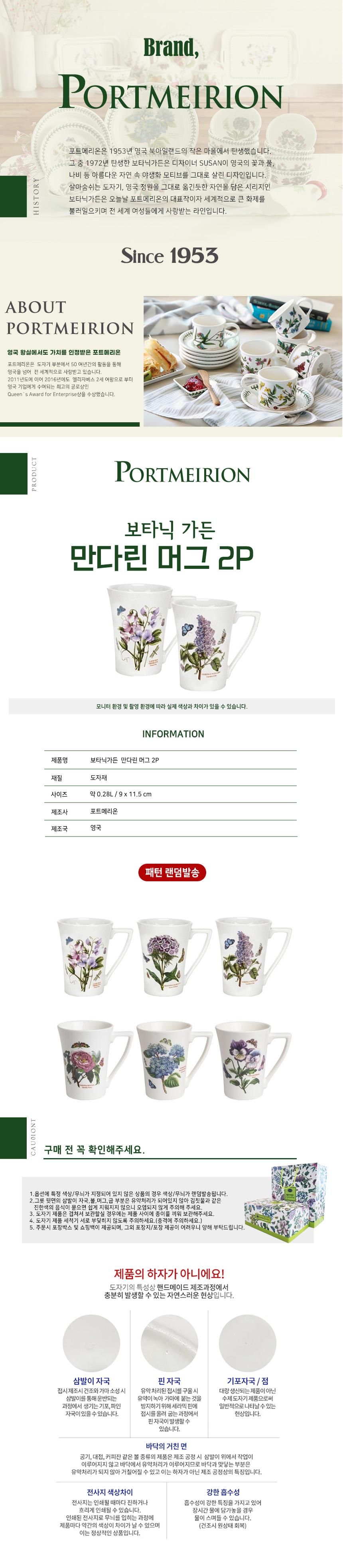 [포트메리온] 보타닉가든 만다린 커피잔(머그) 2개 세트 (디자인 랜덤, 포트메리온 케이스, 쇼핑백포함)