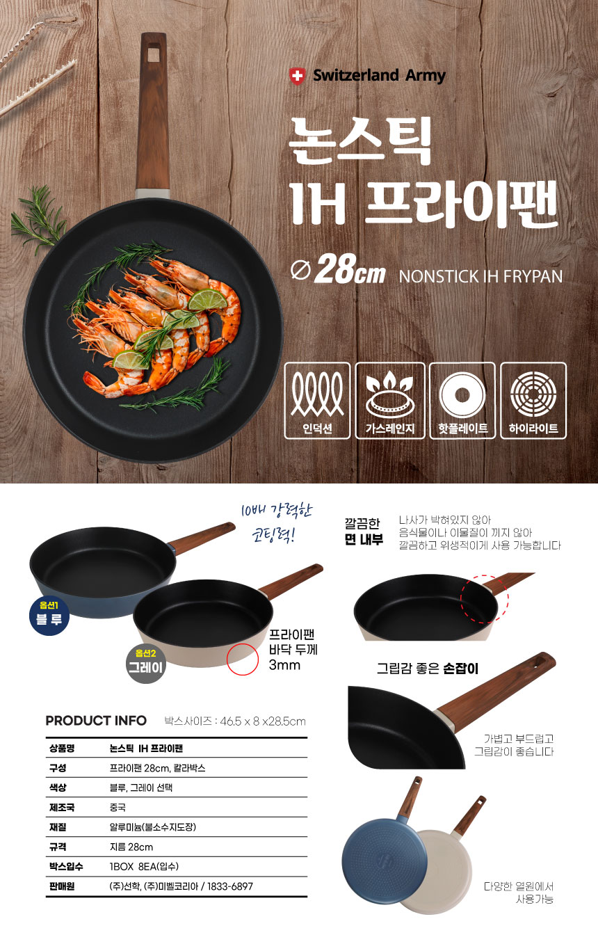 [스위칠랜드아미] 논스틱 IH 프라이팬 28cm (택)
