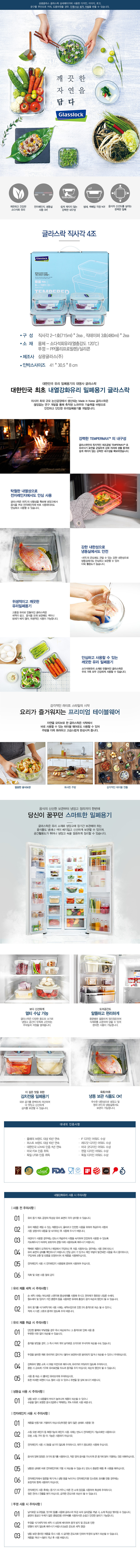 [글라스락]직사각 차곡 혼합 4조세트