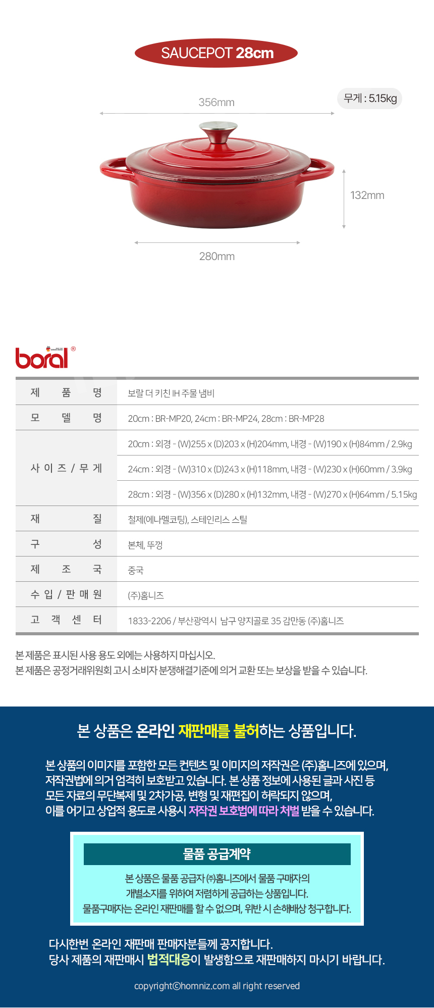 보랄 더 키친 IH 양수 주물냄비 28CMBR-MP28