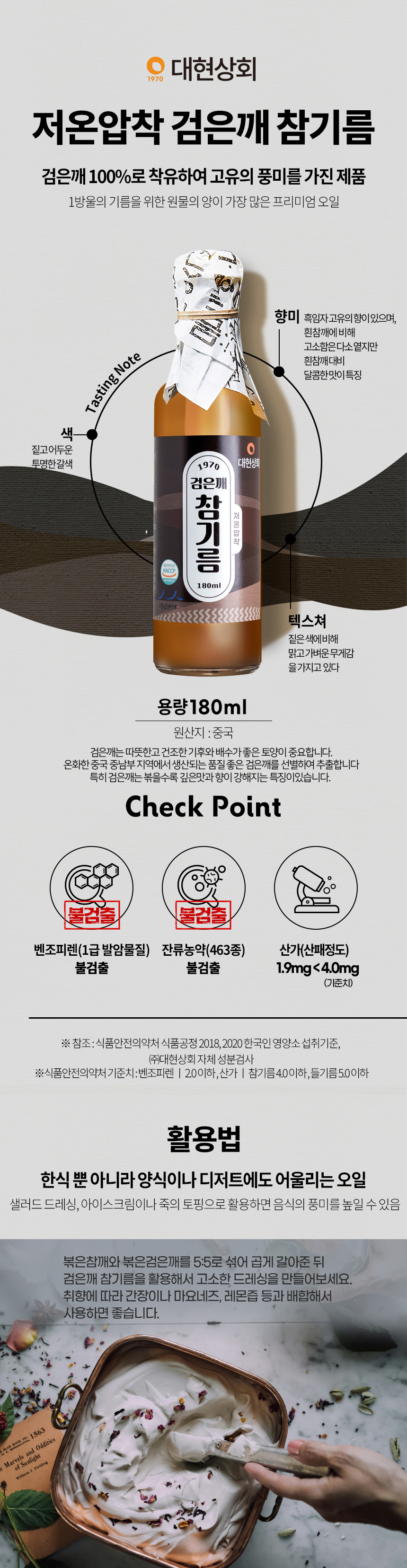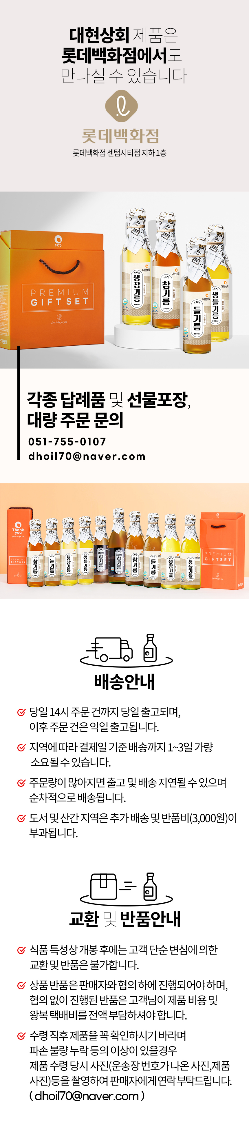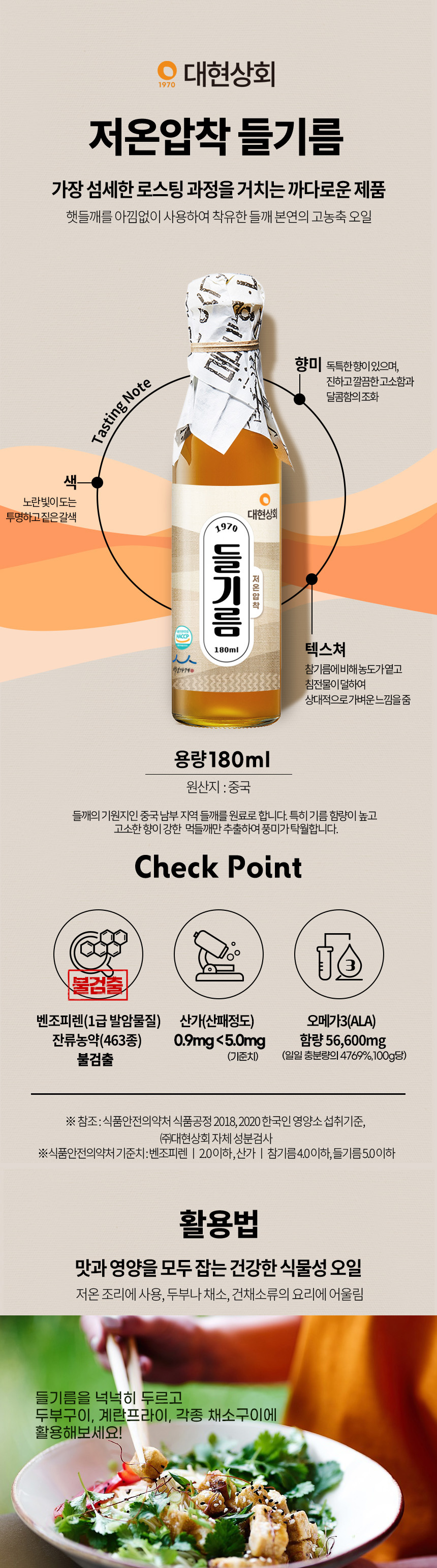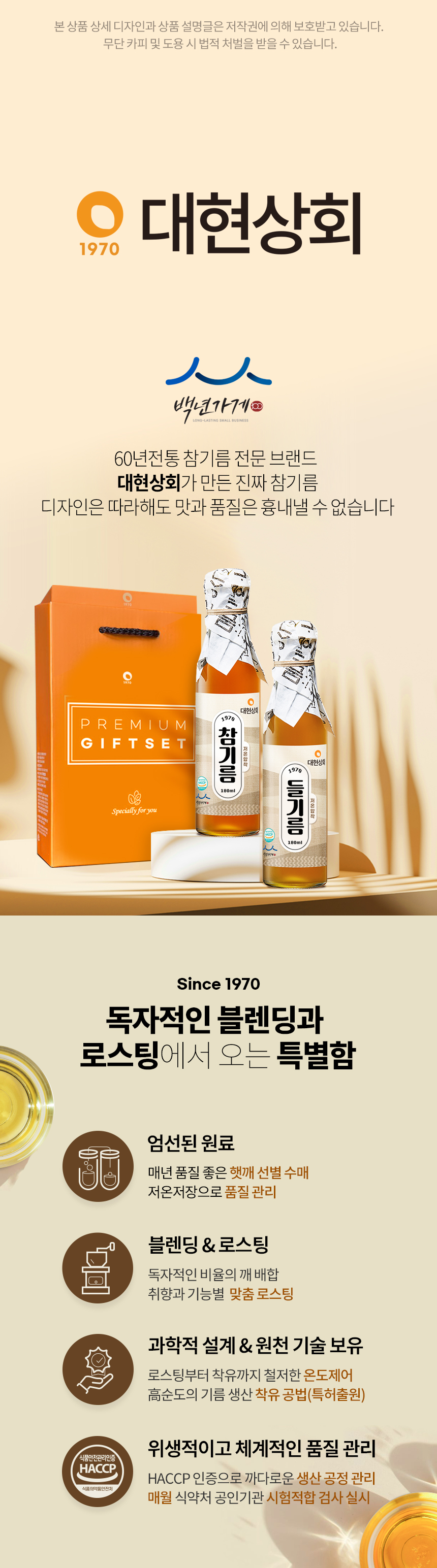 55년전통 대현상회 저온압착 참기름 들기름 생들기름 180ml 모음 / HACCP 인증 백년가게