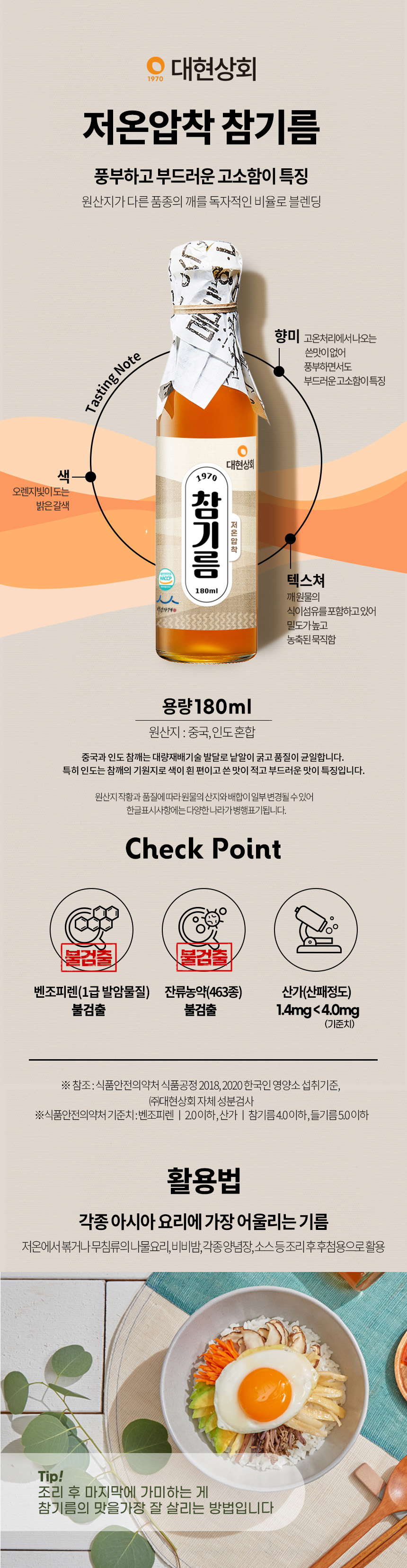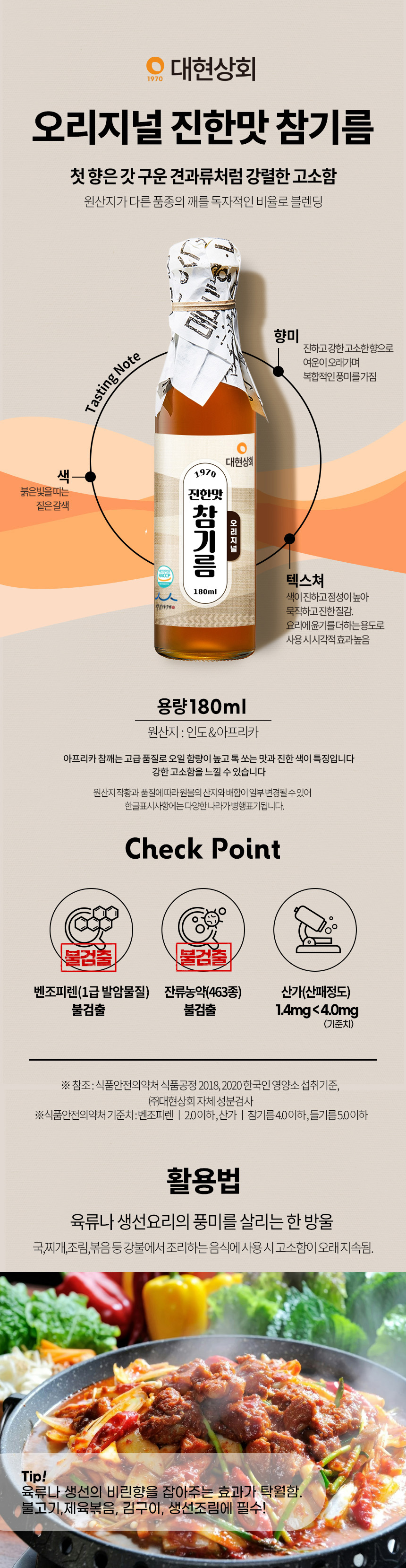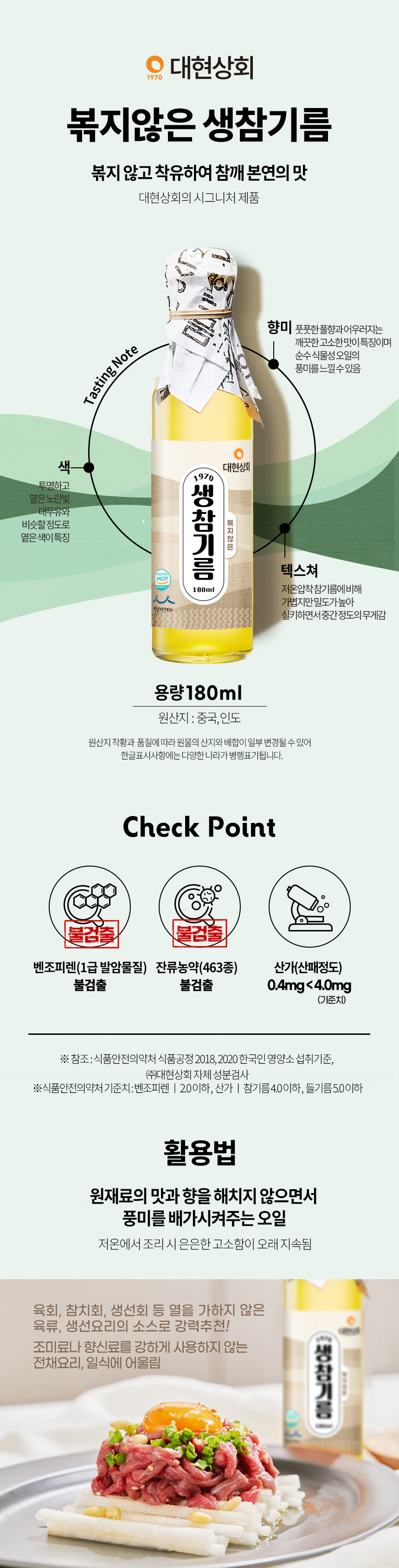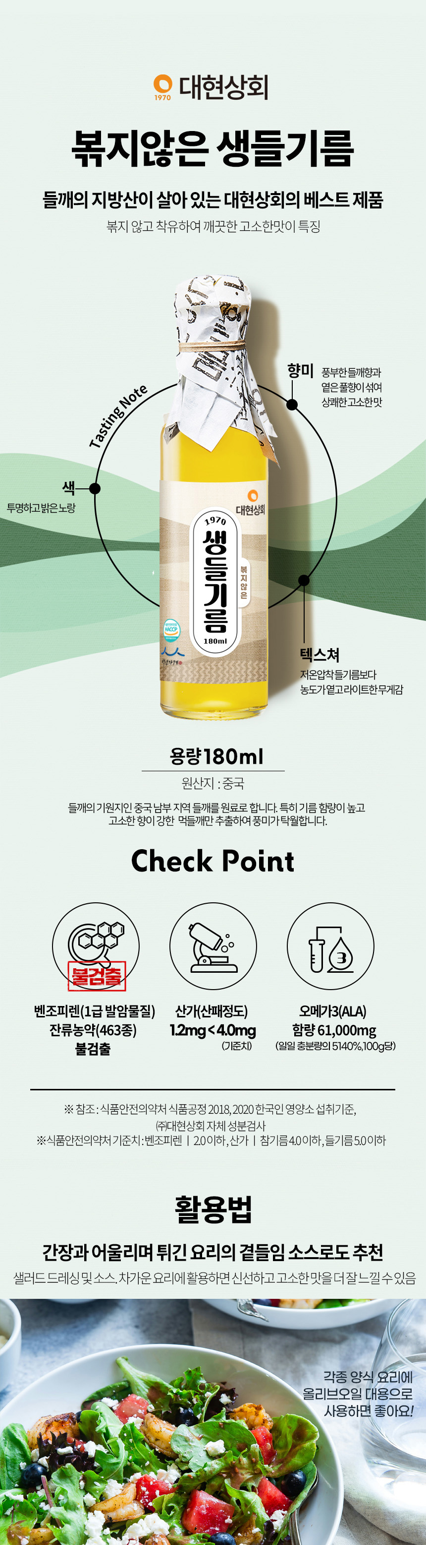 55년전통 대현상회 저온압착 참기름 들기름 생들기름 180ml 모음 / HACCP 인증 백년가게
