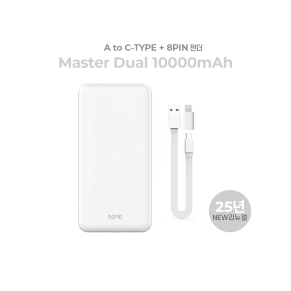 라피드 보조배터리 마스터듀얼 10000 (5핀 0.2M + 8핀&C타입젠더)
