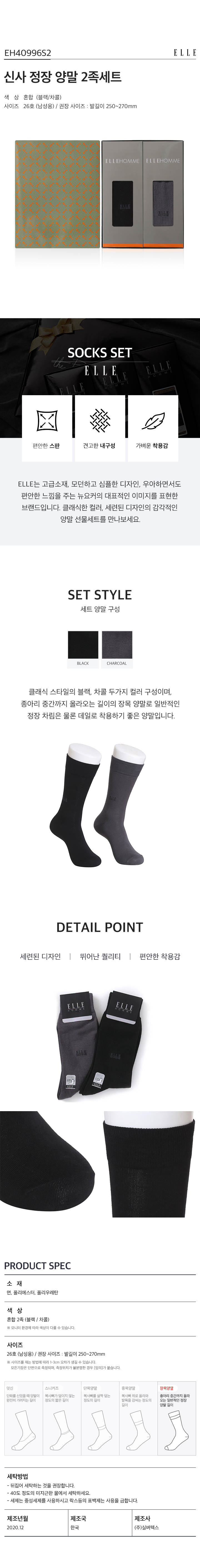 [만원의행복][엘르] 신사 정장 양말 2족세트