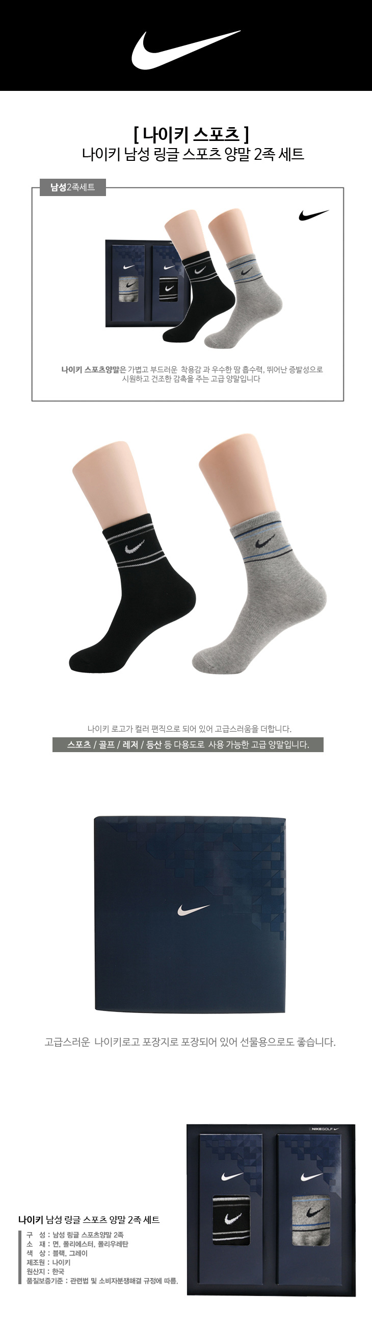 [만원의행복][나이키] 남성 링글 스포츠 양말 2족 세트