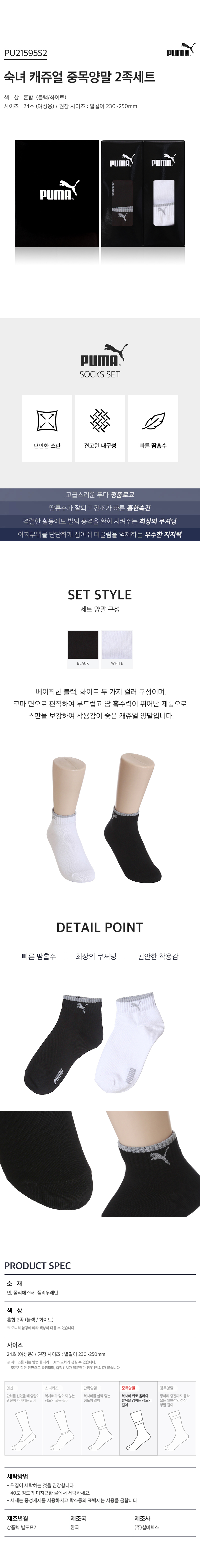 [만원의행복][퓨마] 여성 캐쥬얼 겸용 스포츠 중목양말 2족세트