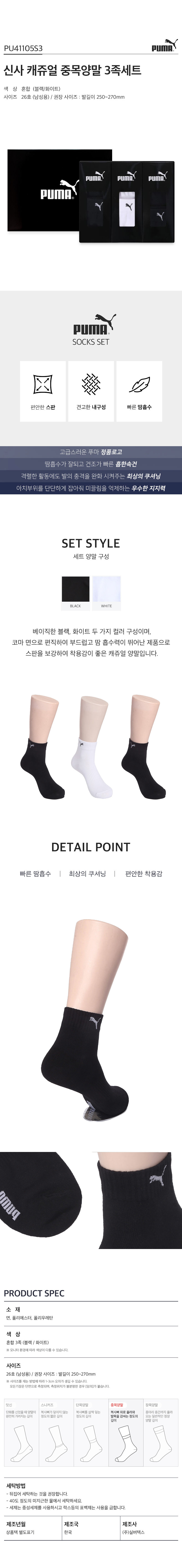 [만원의행복][퓨마] 남성 캐쥬얼 겸용 스포츠 중목양말 3족세트