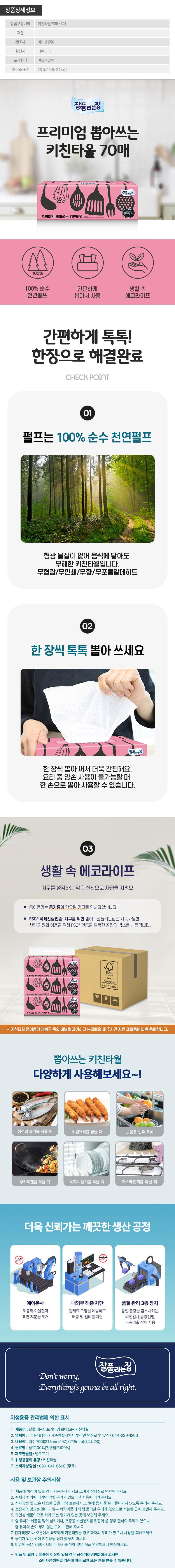 [만원의행복] 잘풀리는집 프리미엄뽑아쓰는키친타올70매3P(3종) 모음전 (택)