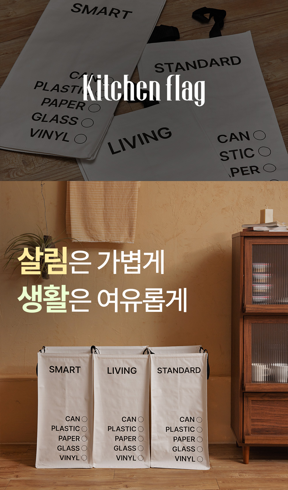 [키친플래그] 3단 타포린 분리수거함
