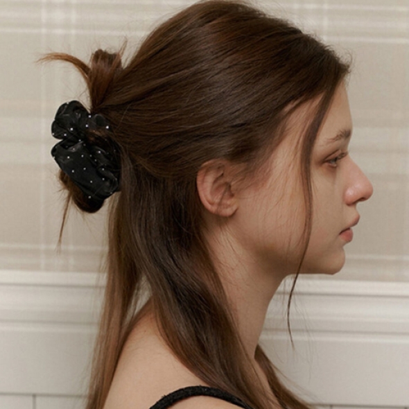 카인더베이비 블랙 글리터 펄 새틴 스크런치