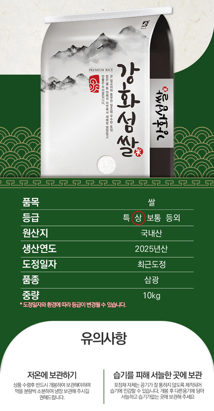 2025년 강화섬쌀삼광 10kg 상등급 쌀