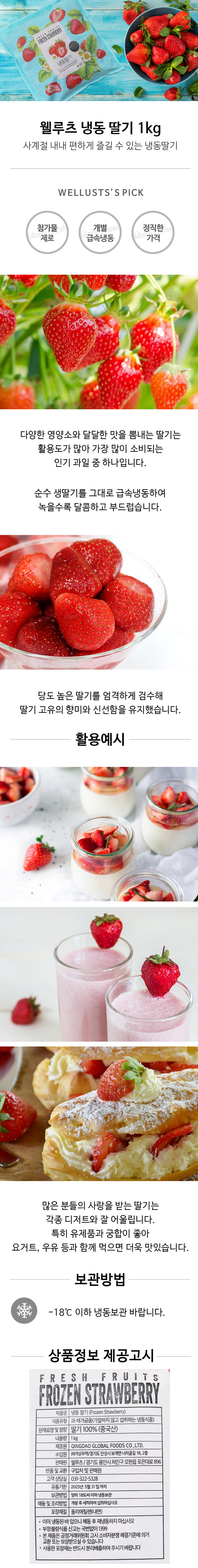 [웰루츠] 냉동 홀 딸기 1kg×2ea