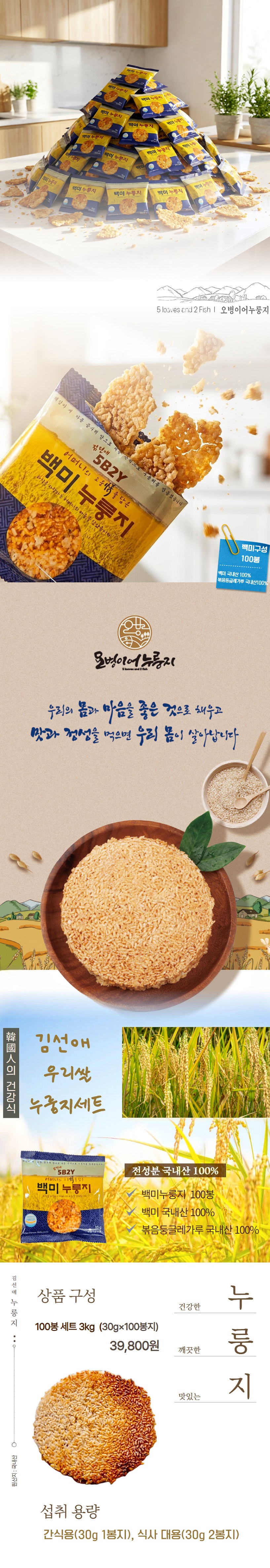 양면으로 구운 김선애 오병이어 누룽김선애 우리쌀 누룽지 100봉 세트 ( 30g×100봉 / 3kg )