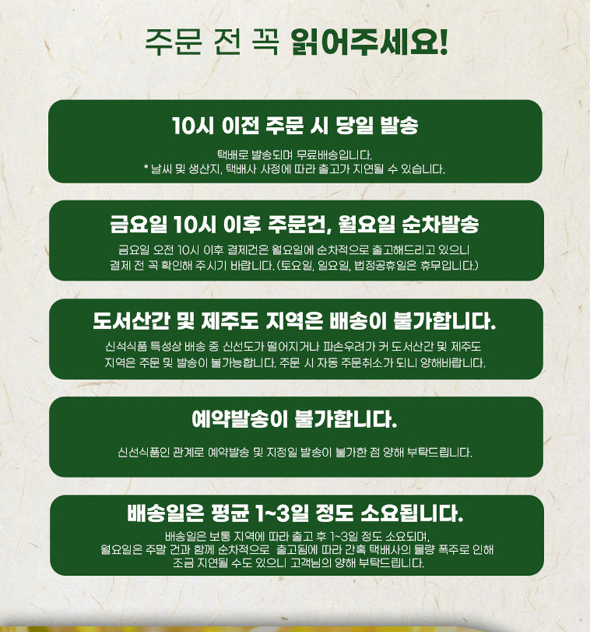 구매/배송 ※ 상품정보에 별도 기재된 경우, 아래의 내용보다 우선하여 적용됩니다.