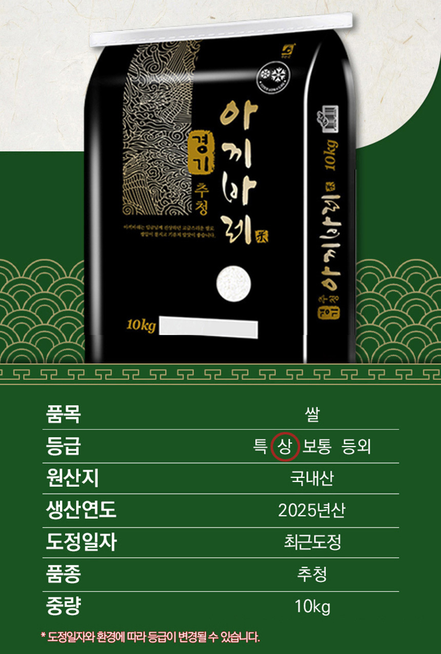 2025년 경기추청아끼바레 10kg 상등급 쌀