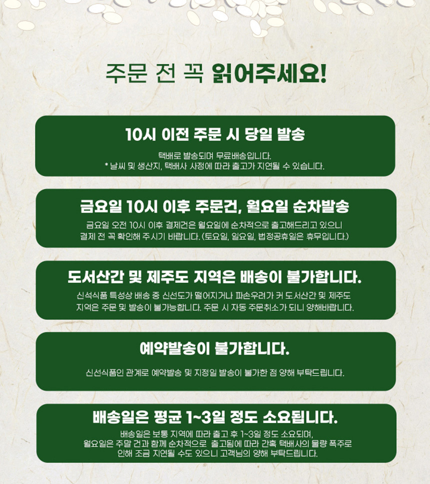 구매/배송 ※ 상품정보에 별도 기재된 경우, 아래의 내용보다 우선하여 적용됩니다.
