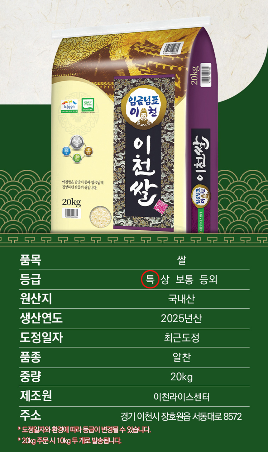 2025년 임금님표이천쌀 20kg 상등급 쌀