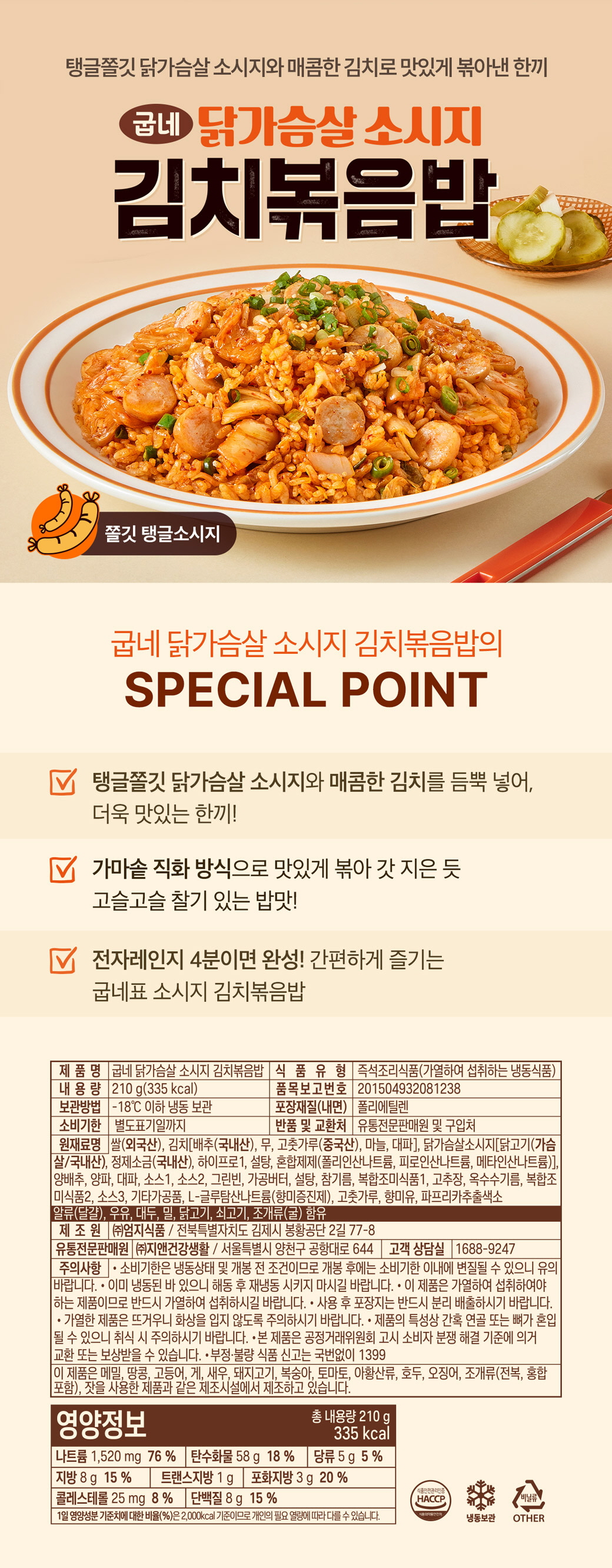 [만원의행복][굽네] 닭가슴살 소시지 김치볶음밥 4팩+닭가슴살 큐브 오리지널 1팩