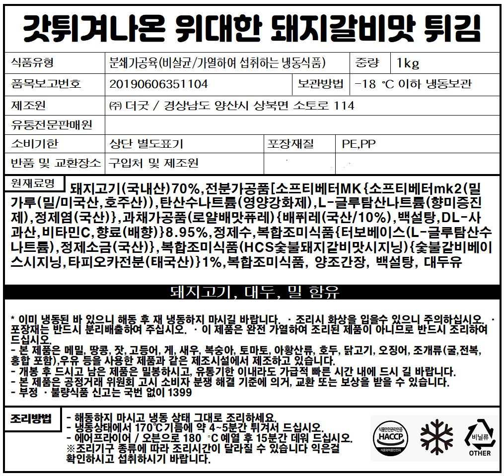 [더굿푸드] 갓튀겨나온 위대한 돼지갈비맛 튀김 1kg