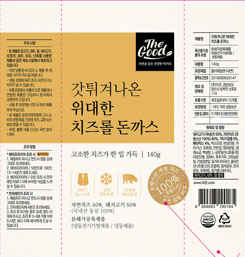 [더굿푸드] 갓튀겨나온 위대한 치즈롤돈까스 140g 2개입