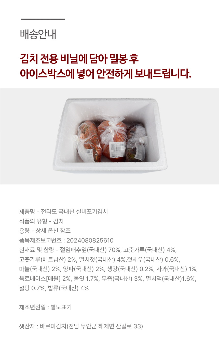 [바르미]전라도 매운 실비 포기김치(1kg/2kg/3kg/5kg/7kg/10kg)