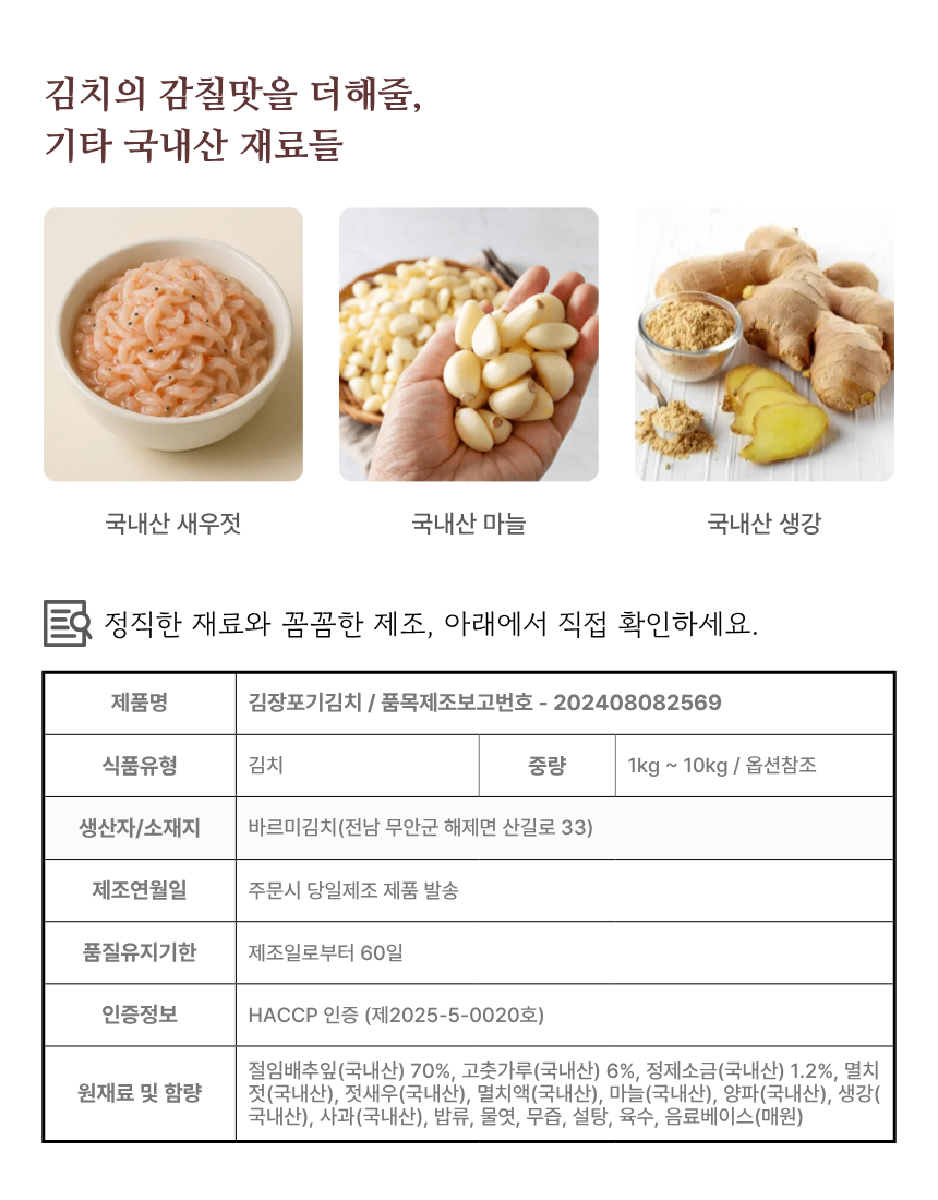 [바르미]국내산 전라도 김장 포기김치(1kg/2kg/3kg/5kg/7kg/10kg)
