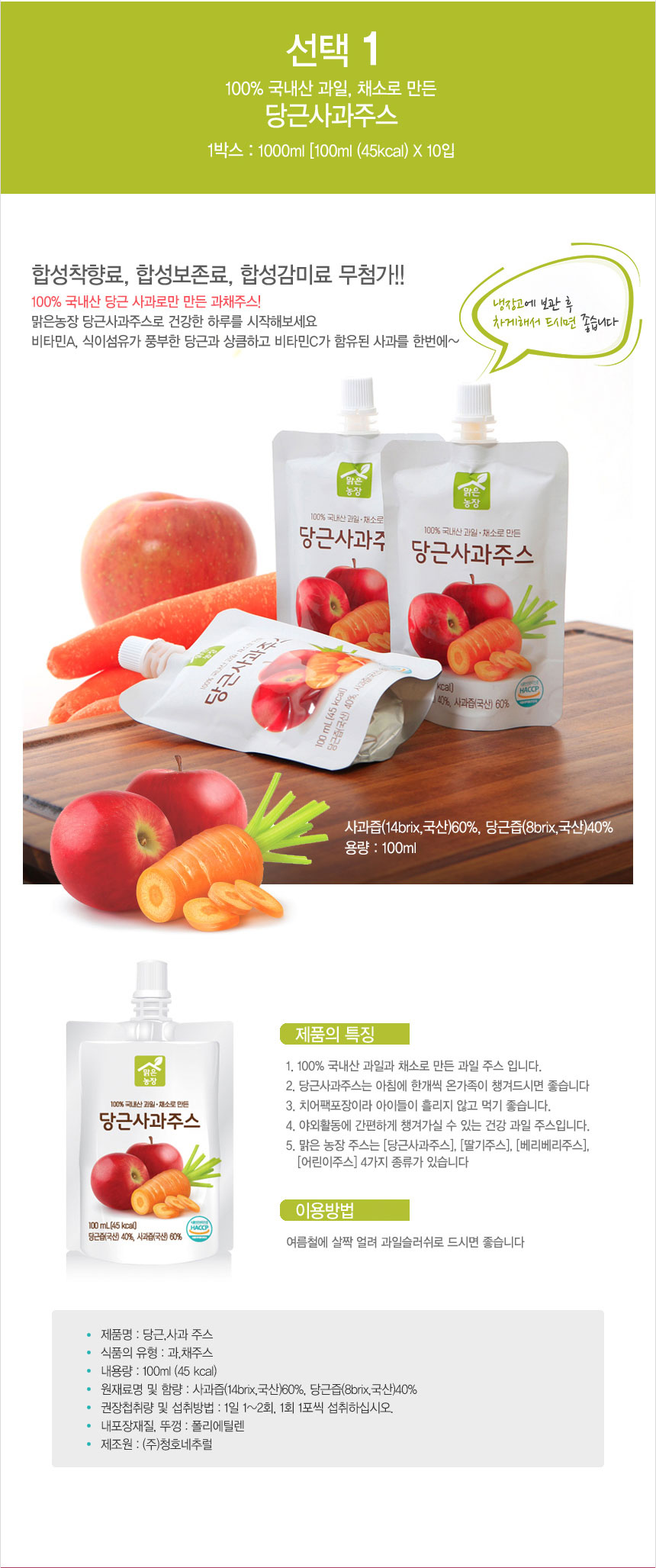 [맑은농장] 국내산 무설탕 무첨가 당근사과주스 100ml×30포